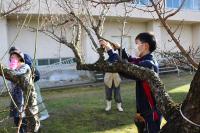 12月9日(火)の午後、校地内の梅の木の剪定を行いました。果樹の専門家である藤瀬さんをお招きし、剪定ばさみと小型のこぎりを使って、梅の木をバッサリ切りました。地域の方もお手伝いに来て下さり、大きな枝も着ることができました。来年の梅の実の収穫が楽しみです!ご協力いただいた皆様、ありがとうございました。