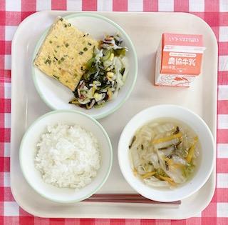 11/6 ご飯、牛乳、さばの塩麹焼き、ちくわの梅肉和え、めった汁