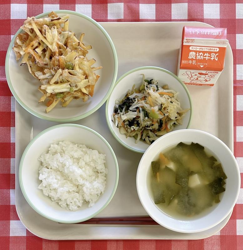 11/6 ご飯、牛乳、さばの塩麹焼き、ちくわの梅肉和え、めった汁