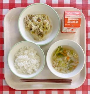 11/6 ご飯、牛乳、さばの塩麹焼き、ちくわの梅肉和え、めった汁