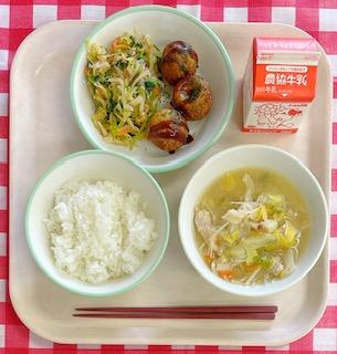 ベースの中華スープに、コーンクリームが入っているので、優しい甘さが生徒に人気の汁物です。
