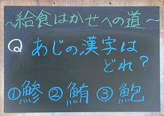 あじの漢字はどれ? ①鯵 ②鮪 ③鮑