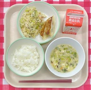 ベースの中華スープに、コーンクリームが入っているので、優しい甘さが生徒に人気の汁物です。