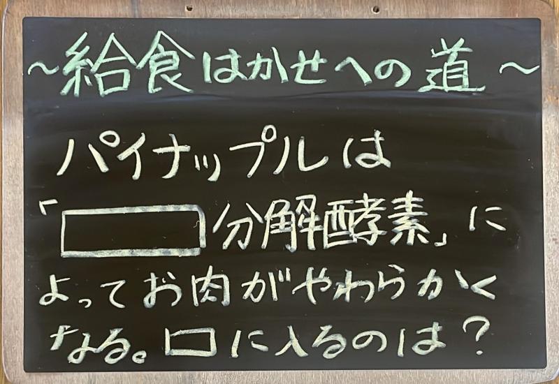 パイナップルは「▢分解酵素」によってお肉がやわらかくなる。