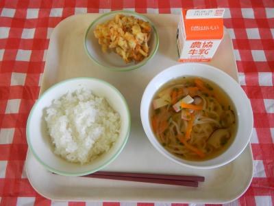 三崎中でも今年はむぎを育てていたので、給食はうどんにしました。