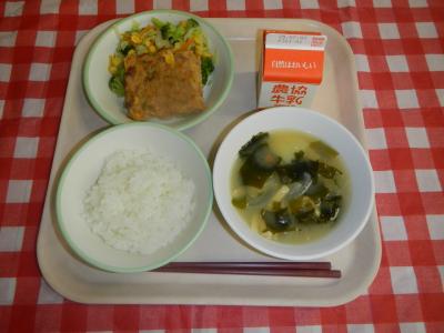 2025/6/24 ご飯、牛乳、フライドチキン風、チーズコーンポテト、コンソメスープ