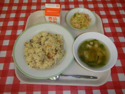 2024/12/13 五目チャーハン、牛乳、ピリ辛ナムル、豆腐の中華スープ