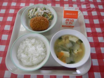 2024/12/6 ごはん、牛乳、野菜コロッケ、ごぼうサラダ、厚揚げのみそ汁