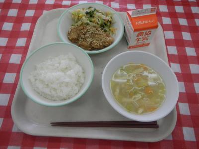 2024年12月18日 15時05分2024/12/18 ご飯、牛乳、鶏肉のごまからめ、ツナの和え物、みそ汁