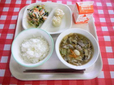 ごはん、牛乳、しゅうまい、中華和え、八宝菜