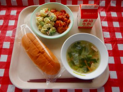 今日の主食は「コッペパン」でした。