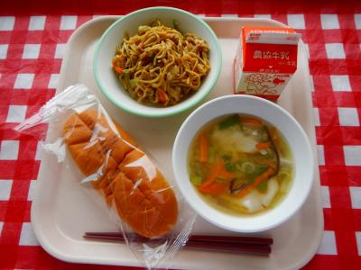 9/10 コッペパン、牛乳、焼きそば、海鮮ワンタンスープ