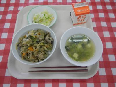 2024/12/4 木の葉丼、牛乳、しめじ和え、白菜のみそ汁