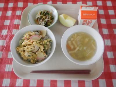 今日は木の葉丼が主食でした。