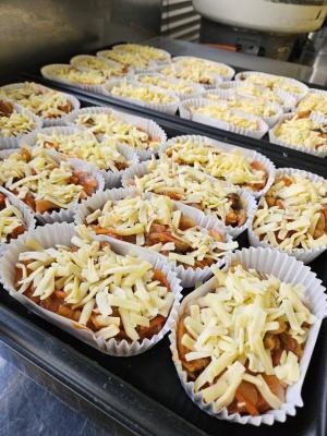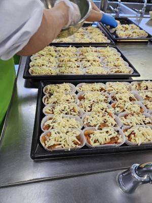 主菜は新しい献立「鶏のピザ焼き」にしました。
