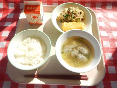 2025/11/13 ごはん、牛乳、出汁巻き玉子、もやしのごま和え、だんご汁