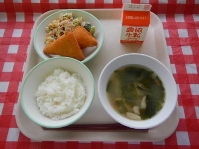 11/17 ご飯、チーズはんぺんフライ、牛乳、れんこんサラダ、豆腐の味噌汁