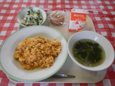 2024/6/7 チキンライス、牛乳、ブロッコリーのゴママヨサラダ、コンソメスープ、ドーナッツ