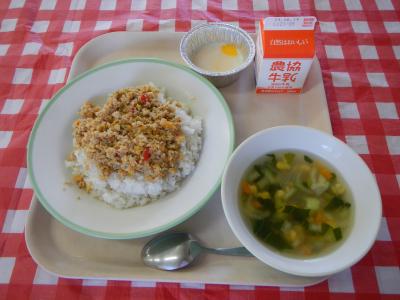 2024/6/14 ガパオライス、牛乳、目玉焼き、春雨スープ