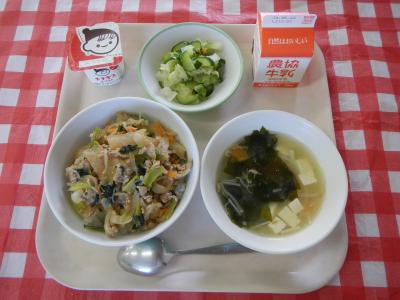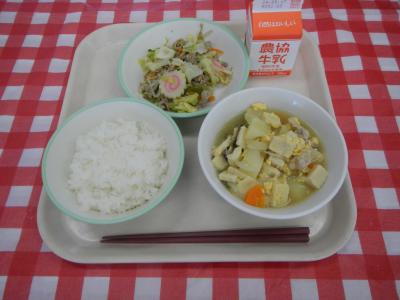 2024/5/14 ご飯、牛乳、五目野菜炒め、高野豆腐の卵とじ