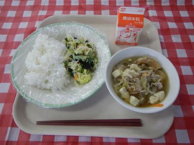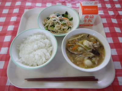 2024/4/15 ご飯、牛乳、野菜の中華和え、八宝菜