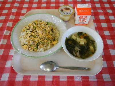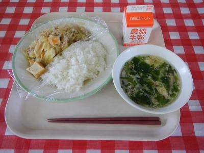 2024/4/11 ごはん、牛乳、豚肉の味噌炒め、卵スープ