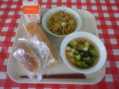 2024/4/17 コッペパン、牛乳、焼きそば、コンソメスープ