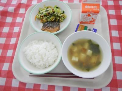 2023/11/13 月 ご飯、牛乳、さばの生姜煮、のりびたし、なめこ汁