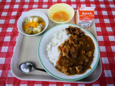 2023/11/10 チキンカレーライス、牛乳、フルーツポンチ