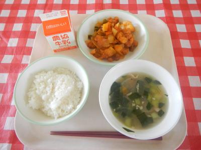 2023/11/15 ご飯、牛乳、酢鶏、トックスープ