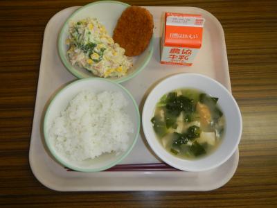 2025/4/24 ご飯、牛乳、ハムカツ、ポテトサラダ、みそ汁