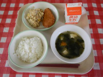 4/10 ご飯、牛乳、カツオフライ、卯の花炒り煮、豆腐のみそ汁
