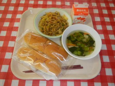 2025/2/20 コッペパン、牛乳、焼きそば、コンソメスープ