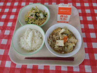 千草和えにはイカもスパゲティも入ってボリュームがあるので、今日もお腹いっぱいな給食です。