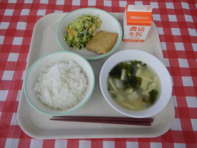 2024/1/9 ご飯、牛乳、信田煮、おひたし、じゃがいものみそ汁