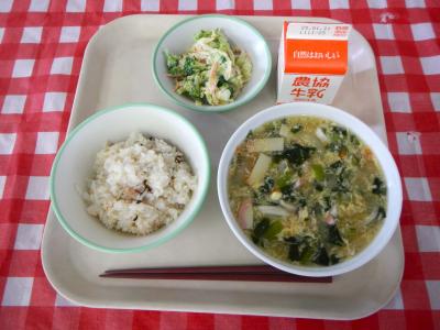 2025/1/14 梅昆布ご飯、牛乳、ツナサラダ、卵あんかけうどん