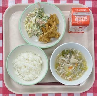 今日のスープは、「中華風コーンスープ」でした。