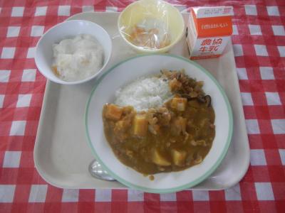 2024/12/20 カレーライス、牛乳、ヨーグルト和え、福神漬け