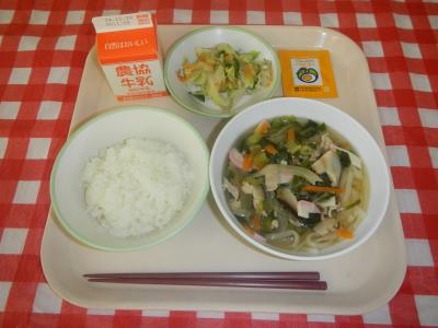 2024/12/23 ごはん、牛乳、肉うどん、あっさり漬け、のりたまふりかけ