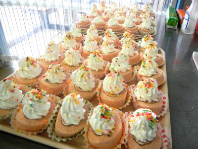ケーキすべてに生クリームを絞っています。カラースプレーがとってもかわいいです。