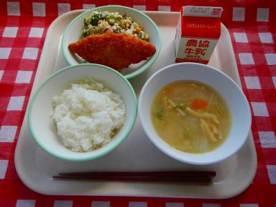 9/16 ご飯、牛乳、白身魚フライ、ひじきマリネサラダ、白菜のみそ汁