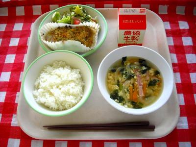 9/17 イタリア料理の日 ご飯、牛乳、鶏肉の香草パン粉焼き、イタリアンサラダ、イタリア風かきたまスープ