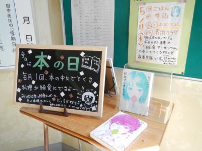 生徒が本の日給食の放送をしました。