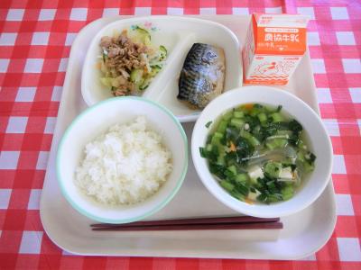 4/22 ごはん、牛乳、さばのみぞれ煮、焼肉サラダ、みそ汁