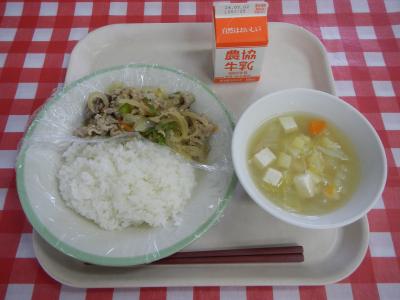 2024/2/26 白ご飯、牛乳、豚肉の生姜焼き、みそ汁