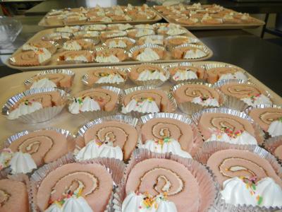 クリスマスらしい給食にしたく、ケーキをデザートに、生クリームを添えました。