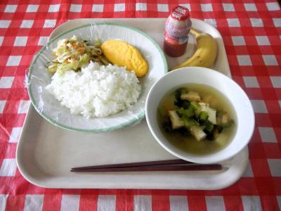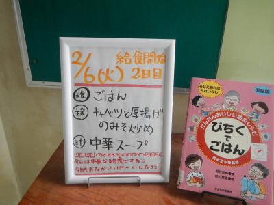 2/6(火)ごはん、牛乳、キャベツと厚揚げのみそ炒め、中華スープ