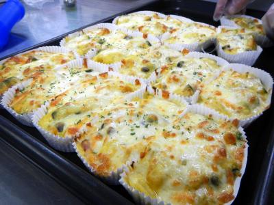 厨房から学校へ、手作りグラタンのいい香りがしていました。