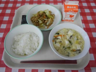 2023/12/20 ご飯、牛乳、ホイコーロー、サンラータン、韓国のり