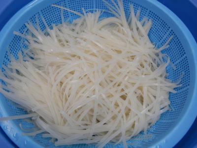 今日のリクエスト給食はフォーです。味付けはさっぱり味のスープにしました。米粉なので、麺は柔らかめで、とても美味しいです。フォーは水につけて、ふやかしてからゆでました。